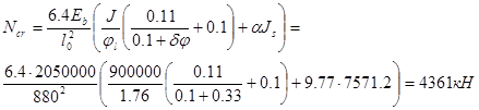 Так как гибкость из плоскости изгиба l0/h=6.12/0.6=10.2 менее, чем в плоскости l0/h=13.62 или
