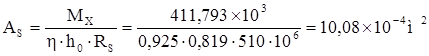 ξ = х/hо = 25,5/819 = 0,0311 < ξR = 0,62.
